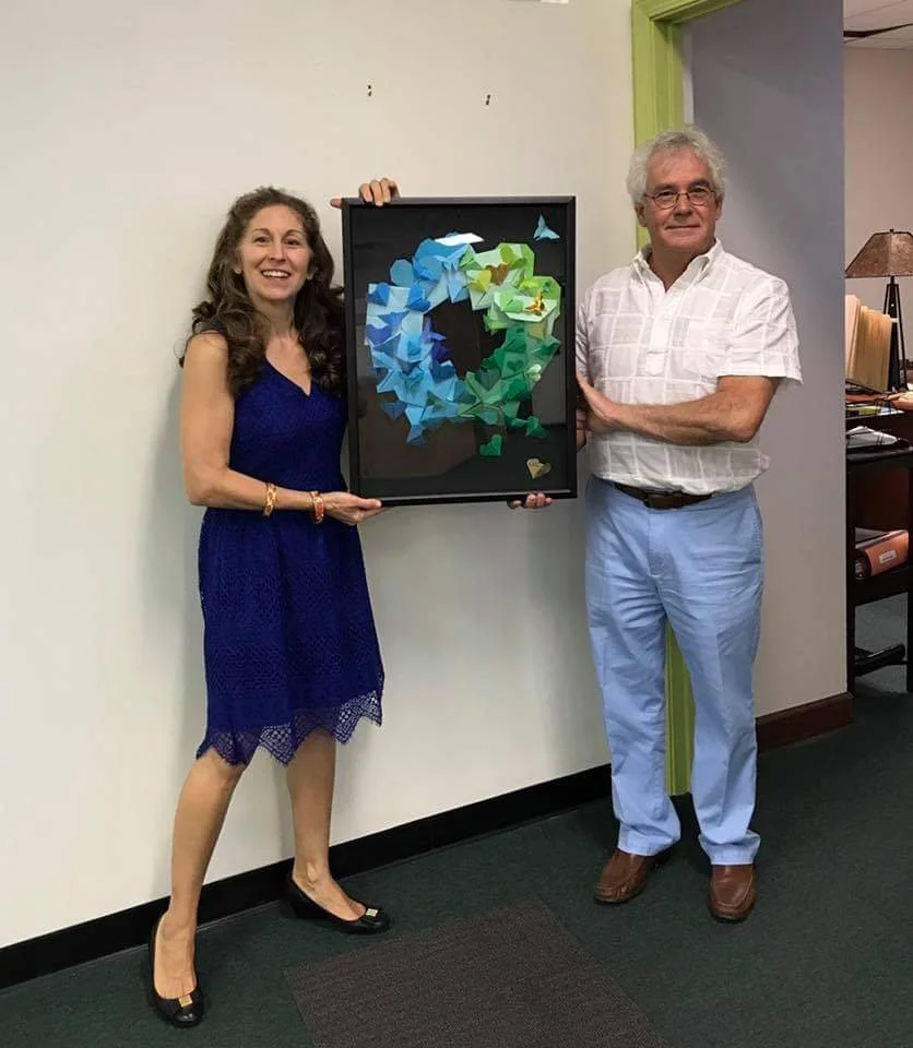 In July 2017, we thanked Bluegrass Integrated Communications for over 3 years of support for thousands of school children! Pictured below is Bill Nichols, President of Bluegrass Integrated, receiving a work of art by Sylvia Cerel-Suhl.